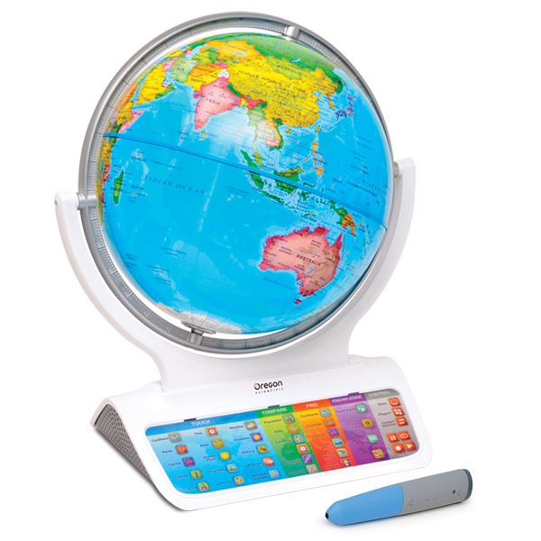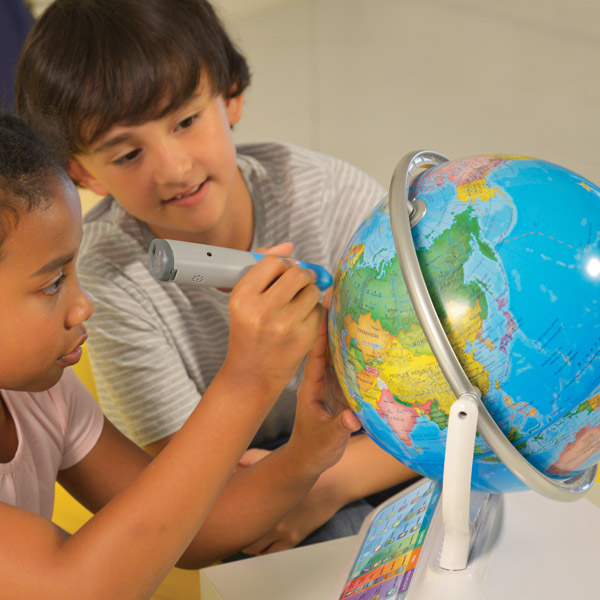 Bring the world to your living room with an interactive talking globe that grants you access to a full electronic atlas, along with fast facts on nations, capitals, populations, leaders, currency, weather and national anthems at the touch of a pen. Expand your view with expansions that take you to the stars above, and on a journey through the mysterious and extremes of our world. SmartGlobe™ is updateable via the Internet, so you and your family will always be up to date on planet Earth.
