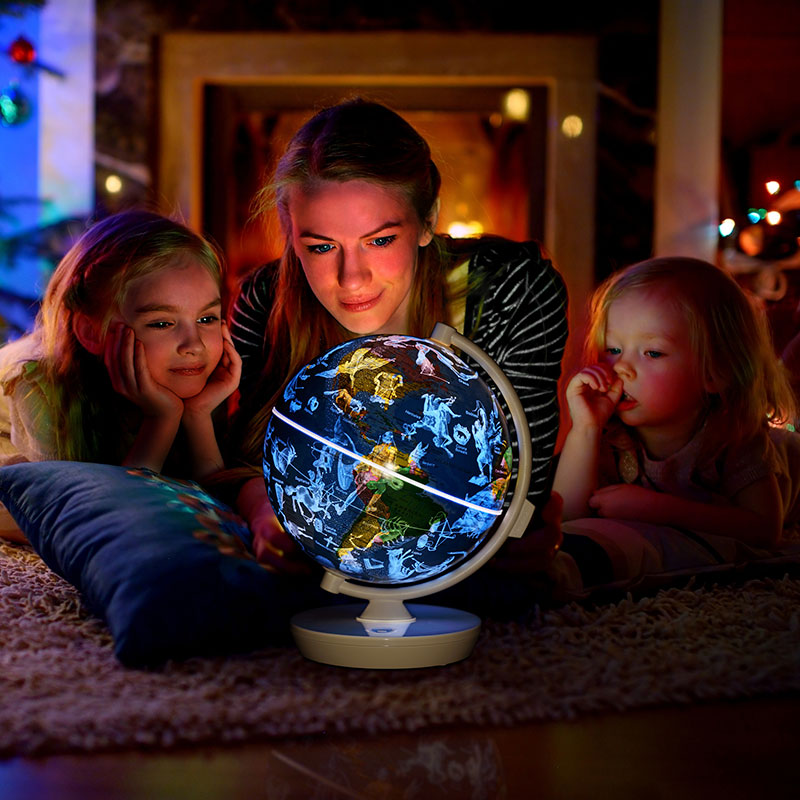 At bedtime, the SmartGlobe™ Myth transforms into an amazing night light as the globe’s sky is illuminated by the stars of 88 constellations.