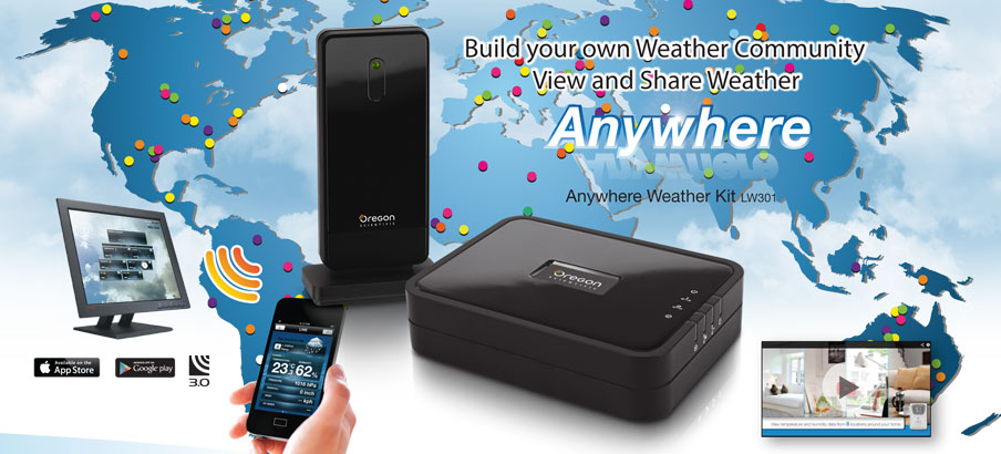 Track the weather at home from anywhere in the world through your smartphones or computers! The Anywhere Weather Kits automatically upload weather data to your online storage for easy access, and even allow you to share data automatically with others. Now you can monitor your house in fair weather and foul, even when you're miles from home!